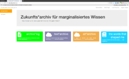Im Zukunfts*archiv für marginalisiertes Wissen wird die Auseinandersetzung mit Machtverhältnissen und Diskriminierung in Wissensstrukturen in einen feministischen, hochschulpolitischen Kontext gesetzt. Drei Tage wird das Zukunfts*archiv als Raum mit einer Vielzahl an partizipativen Formaten und Installationen bespielt, die explizit dazu einladen, Wissen, Fragen und eigene Projekte beizutragen, sodass das Archiv im Laufe der Zeit lebendig wachsen kann.